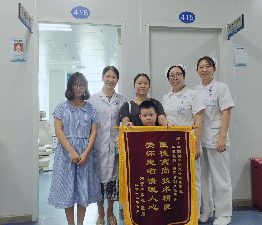 耳鼻喉科姜军合副主任医师获一面锦旗。患儿刘某溯,5岁,因鱼刺卡喉来就诊,由于异物镜较粗,患儿小,不配合,家长特别着急。姜主任沉着冷静,耐心的和小朋友沟通,最终取出异物,患者家属表示非常感谢。(通讯员 康喜讯)