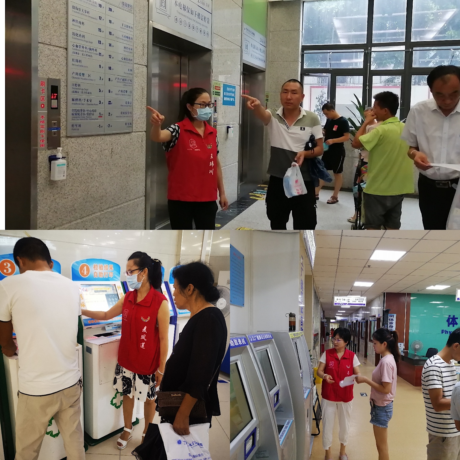 8月20日、25日,第四、十五党支部党员在两院区开展导诊指引、咨询解释和排队疏导等服务。8月25日台风“白鹿”登陆,我院U站关闭不能提供志愿者服务期间,党员同志坚持在急诊科、门诊部、住院部等部门为患者提供志愿者服务,以实际行动践行不忘初心、牢记使命,全心全意为人民服务的宗旨。(通讯员 王洪强)