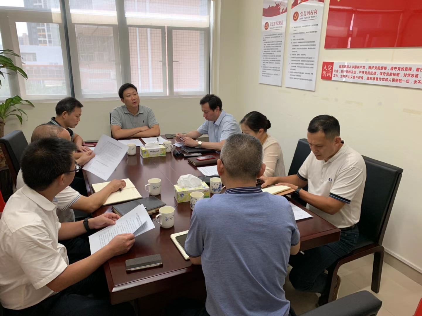 8月23日,第一党支部召开支委会。会上首先落实第一议题,学习了《习近平新时代中国特色社会主义思想学习纲要》之《习近平新时代中国特色社会主义思想是党和国家必须长期坚持的指导思想》、习近平出席“不忘初心、牢记使命”主题教育工作会议发表的重要讲话、《中央重磅意见:支持深圳建设中国特色社会主义先行示范区》及《中国共产党党员教育管理工作条例》并展开讨论。支部书记曾小兵就支部八、九月主题党日活动内容及第四季度主要工作作了部署,要求支部“不忘初心、牢记使命”,扎实做好各项工作,迎接新中国成立70周年。(通讯员 许艳贞)