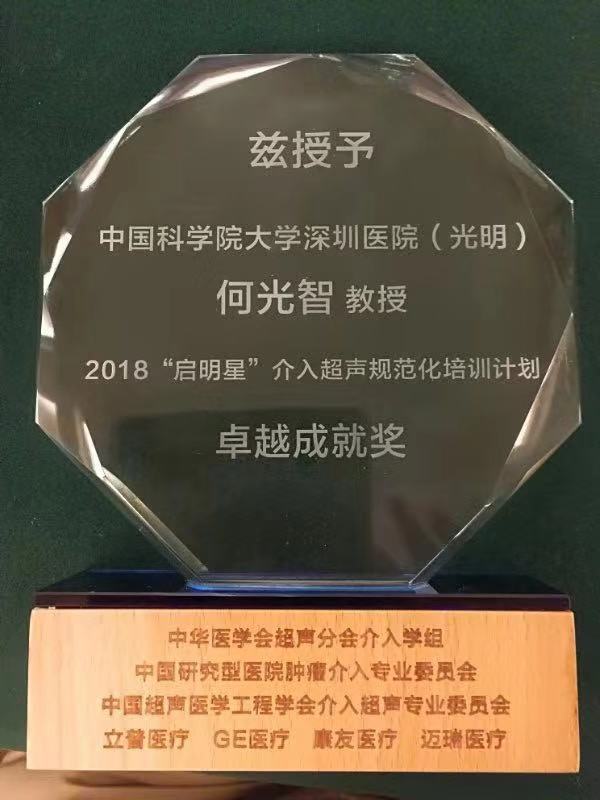 8月24日,党员、超声科主任何光智受邀参加中国超声医学工程学会第五届全国介入超声医学学术交流大会,会上作了《不同类型子宫肌瘤消融策略》的专题报告。大会授予何光智主任团队 “2018‘启明星’介入超声规范化培训计划卓越成就奖”,并聘请何光智主任担任 “‘启明星’介入超声规范化培训计划(第二季)启明新星专家讲师。(通讯员 张家玲)