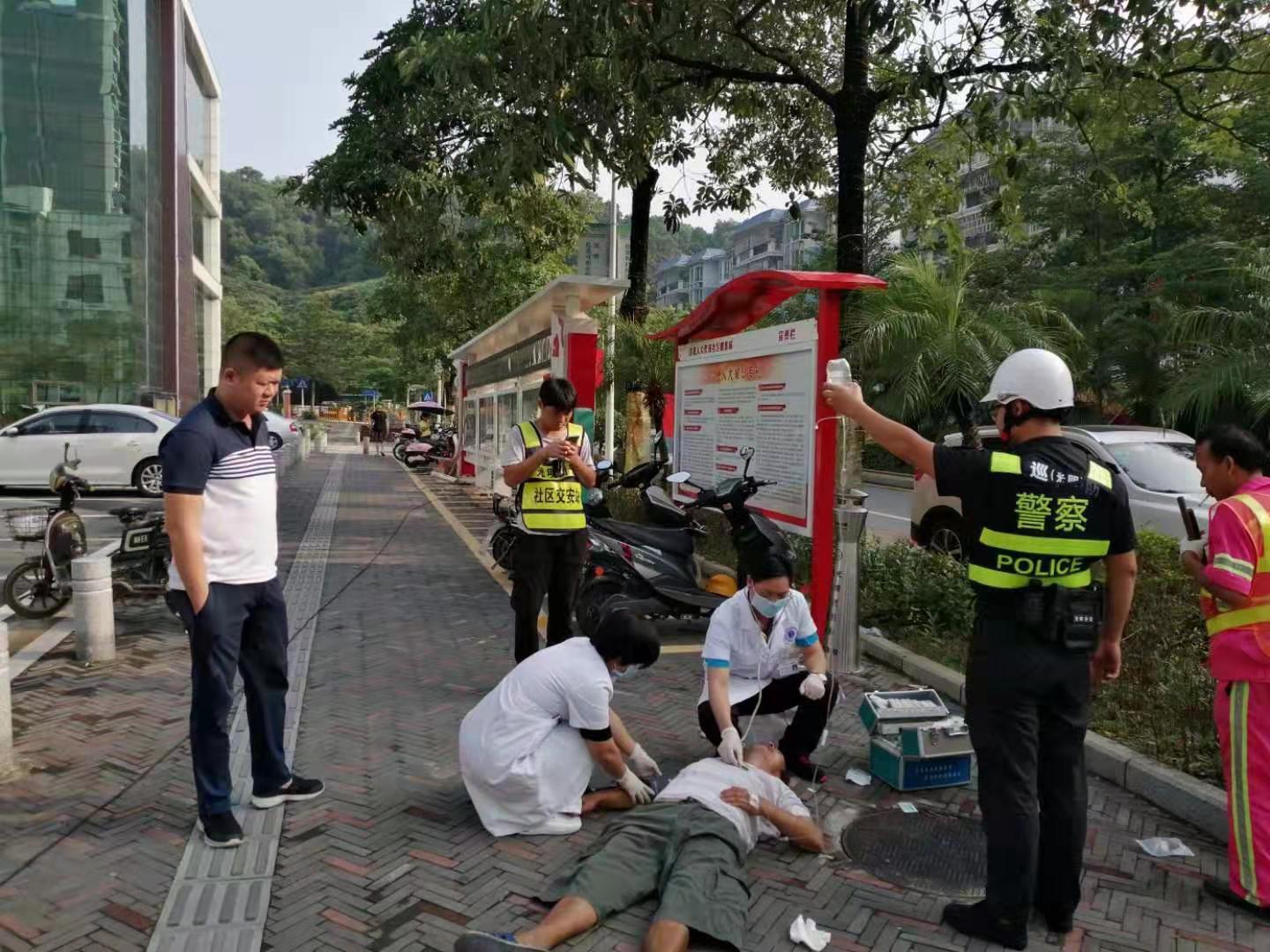 9月18日早上8点06分,白花社康接到社区工作人员的通知说路边有老人摔跤倒地,叶金辉医生和林燕兰护士立刻抓起出诊箱就跟着社区巡逻车出发,8点07分到达现场,他们为患者检查、量血压、对头部外伤进行包扎止血,后患者家属到达,8:20分120到达并成功转运病人。接到报警的警员说:“警务人员已经是第一时间赶来,到达社康医务人员已经在急救了,行动迅速”。社康人时时刻刻在践行着居民健康“守门人”的职责。(通讯员 林燕兰)