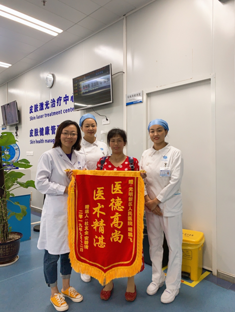 患者安女士,因受红斑狼疮严重困扰数十年来我院皮肤科就诊,经胡鹏飞医生近半年的细心调理、医治,目前病情稳定,重新恢复了积极的生活状态,患者送锦旗表示衷心感谢。(通讯员 王紹莹)