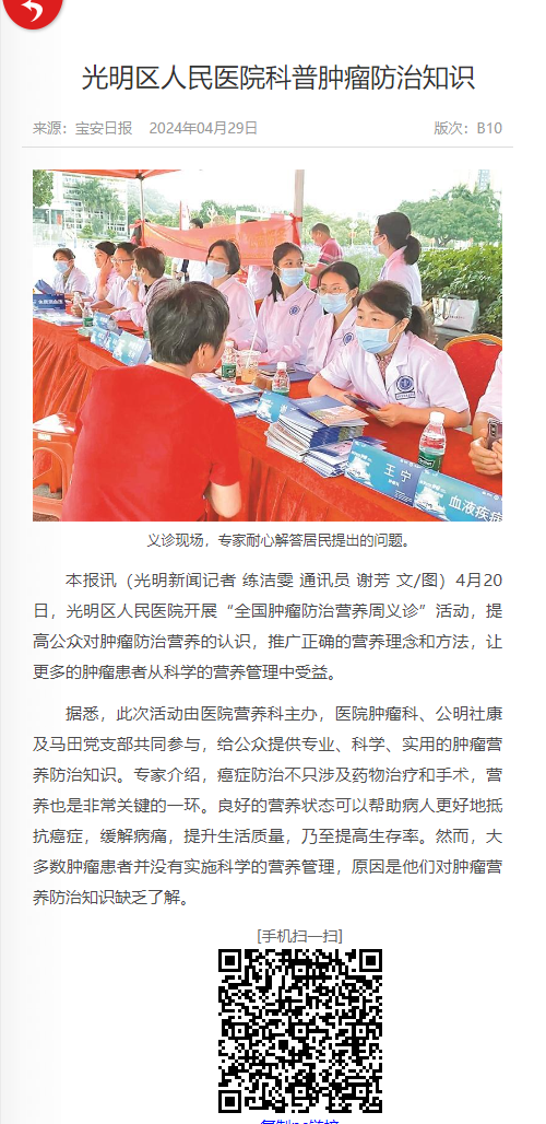 宝安日报:光明区人民医院科普肿瘤防治知识