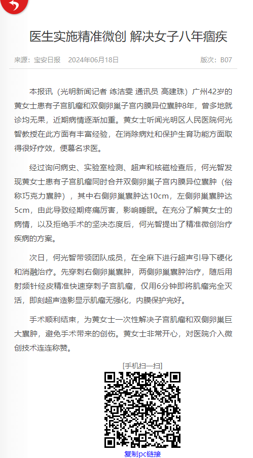 宝安日报:医生实施精准微创 解决女子八年痼疾