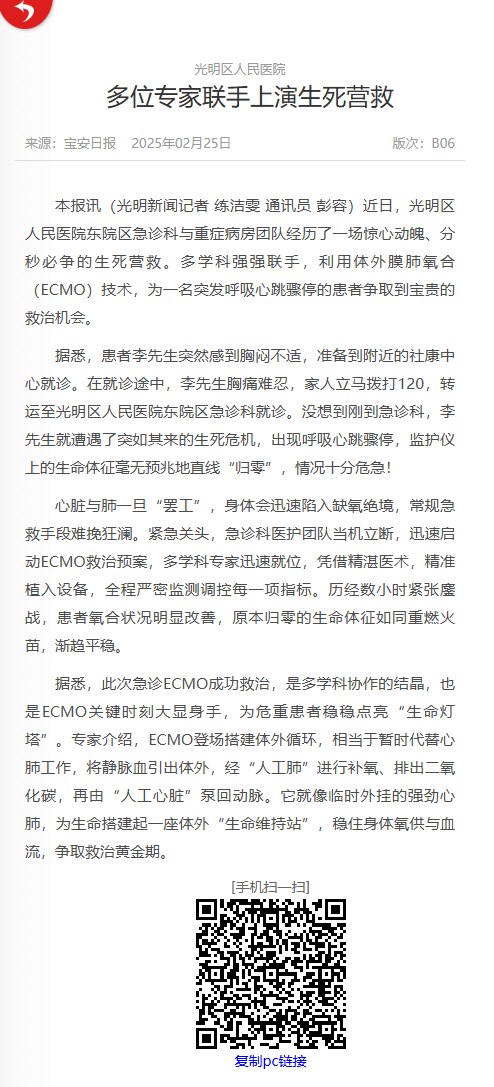 宝安日报:光明区人民医院 多位专家联手上演生死营救